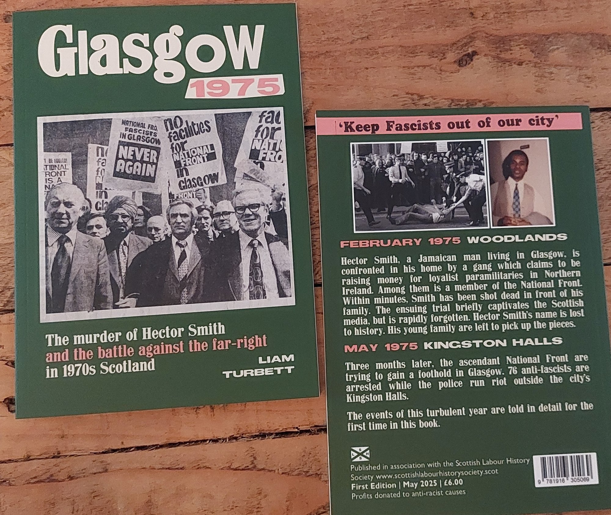 Profits from book sales will be donated to anti-racist causes. Glasgow 1975 has been published in association with the Scottish Labour History Society.